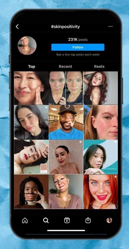 #skinpositivity is about people sharing their real skin, with acne, scars, eczema, rosacea, hyperpigmentation, etc. While taking care of your skin to restore it to is best self, accepting ones #flawthentic self in person or online creates a more realistic standard of beauty that consumers are striving for.